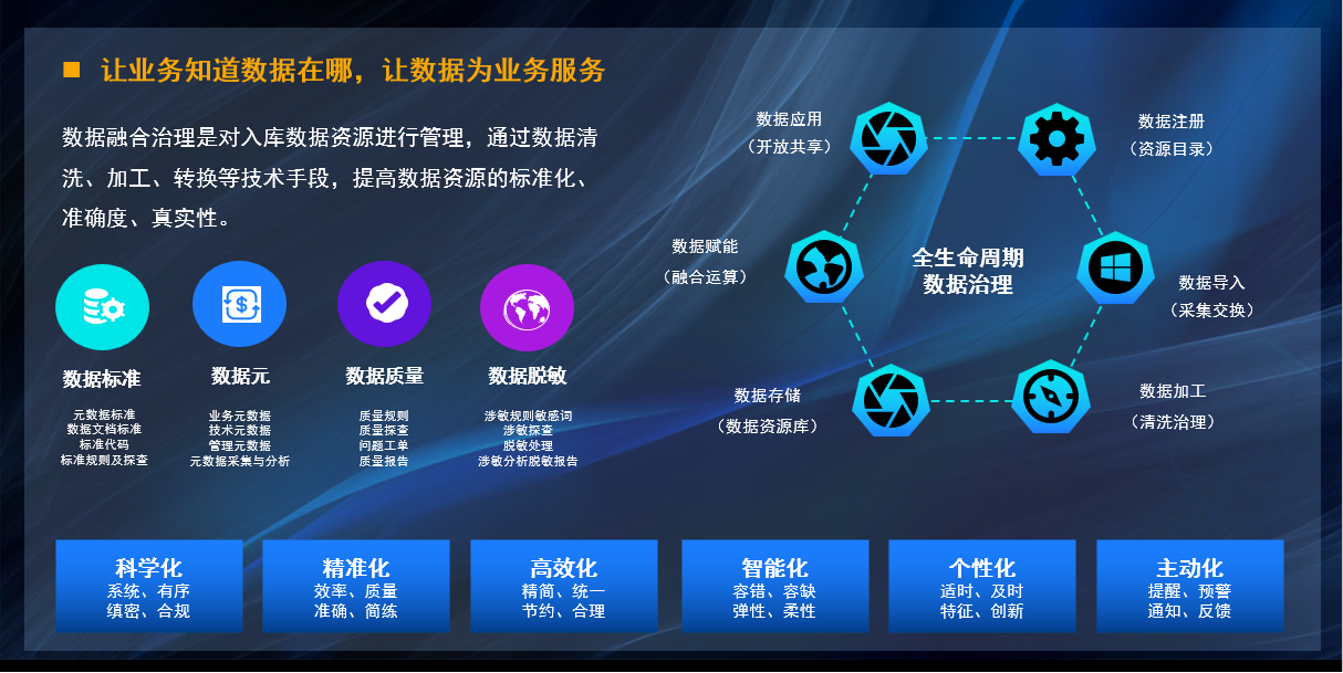 一、產(chǎn)品簡(jiǎn)介數(shù)據(jù)融合治理是對(duì)入庫(kù)數(shù)據(jù)資源進(jìn)行管理,通過數(shù)據(jù)清洗、加工、轉(zhuǎn)換等技術(shù)手段,提高數(shù)據(jù)資源的標(biāo)準(zhǔn)化、準(zhǔn)確度和真實(shí)性,貫穿于數(shù)據(jù)注冊(cè)、數(shù)據(jù)導(dǎo)入、數(shù)據(jù)加工、數(shù)據(jù)存儲(chǔ)、數(shù)據(jù)賦能、數(shù)據(jù)應(yīng)用的全生命周期數(shù)據(jù)治理,包含數(shù)據(jù)質(zhì)量系統(tǒng)和數(shù)據(jù)…