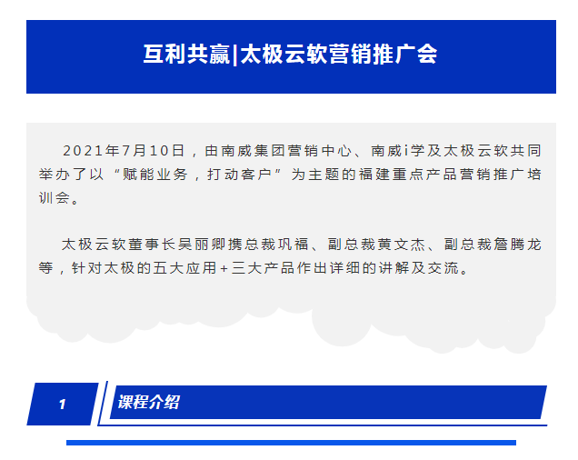 此次工作坊的培訓(xùn),加深了集團(tuán)區(qū)域銷售機(jī)構(gòu)對太極云軟產(chǎn)品的認(rèn)知和了解,加強(qiáng)了集團(tuán)銷售與太極云軟的協(xié)作,有利于實現(xiàn)雙方互利共贏。基于集團(tuán)的賦能,結(jié)合太極云軟自身優(yōu)秀的產(chǎn)品能力,太極云軟離上市目標(biāo)又更近一步。