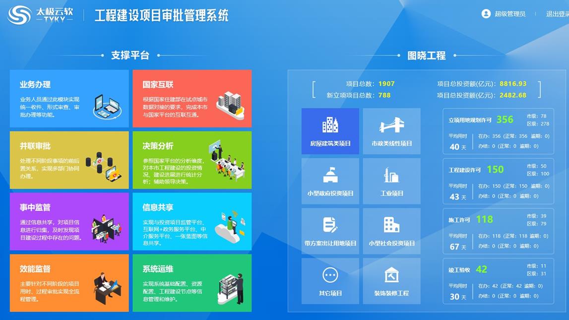 深圳太極云軟積極參與各級政府整合建設(shè)覆蓋地方各有關(guān)部門及覆蓋省、市、區(qū)(縣)的工程建設(shè)項(xiàng)目審批管理系統(tǒng)。